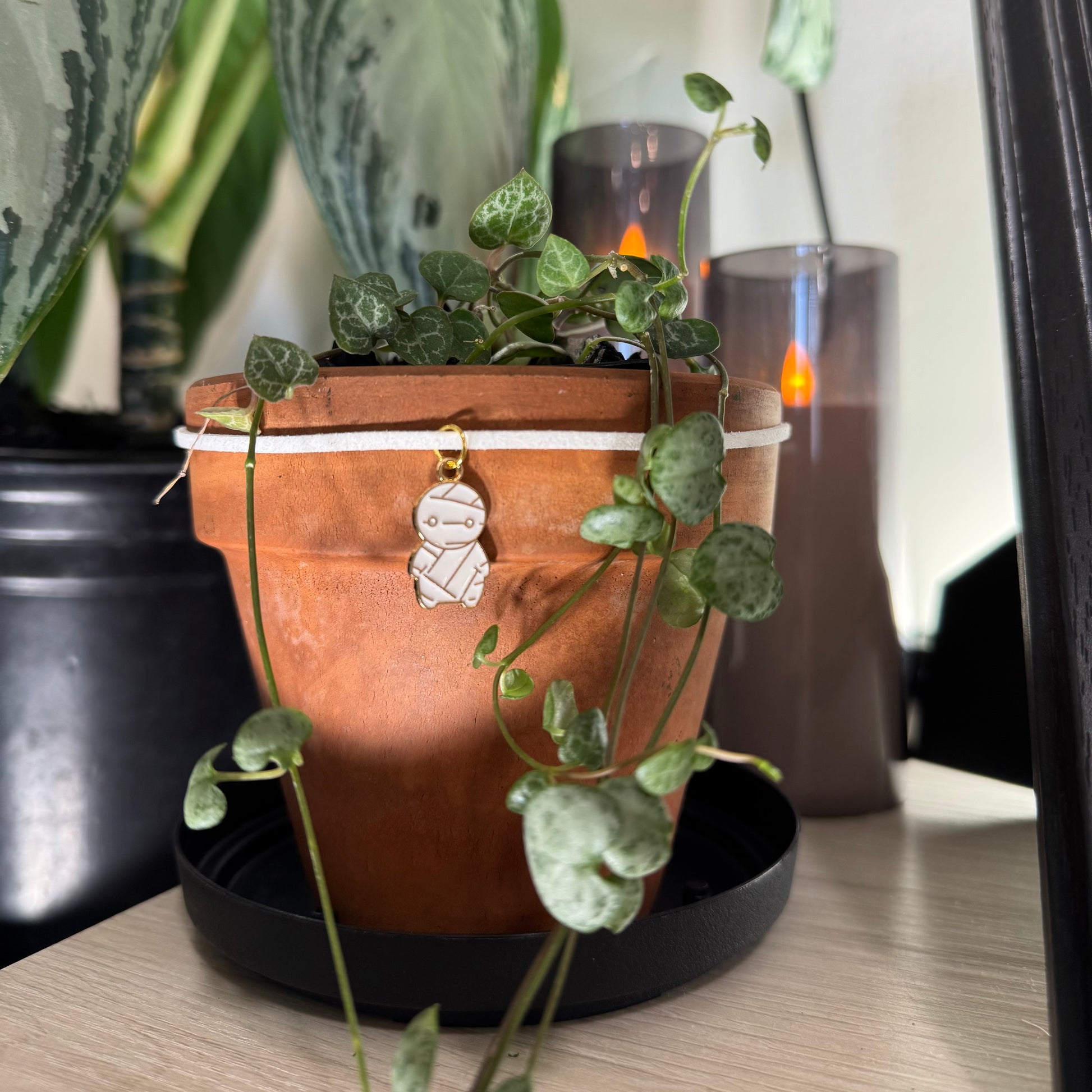 Charm wrap length is 40 inches long. Each charm wrap is adjustable in size and will fit majority of indoor plant pot sizes.